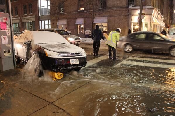 There was an accident today at a fairly major intersection in Toronto. A car hit a fire hydrany in sub-zero temperatures.