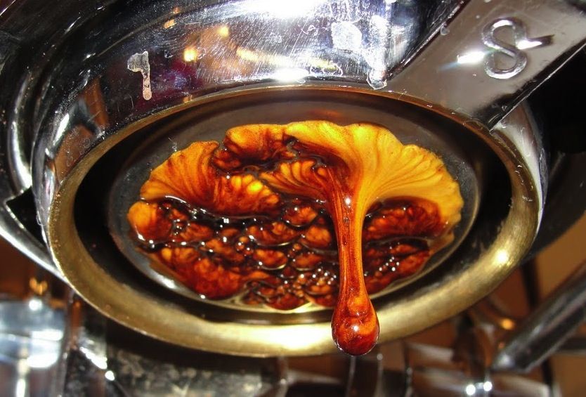 This is how I begin each shot of espresso. I feed 18 grams of coffee beans into a quality espresso grinder. It produces a fine, consistent grind of coffee. I carefully dose the grinds so they fill the basket evenly before I lock in the portafilter and pull my shot.