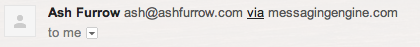 My boss pointed out that, with my new email provider, GMail is displaying a weird message in the "from" field: