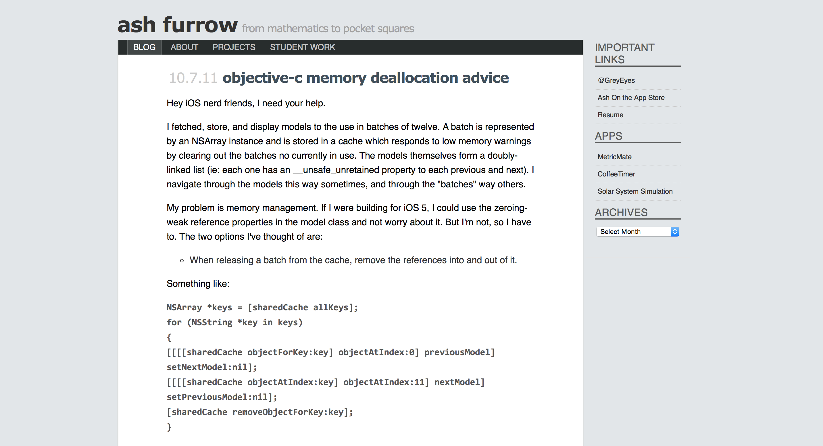 That Summer, after winning a WWDC scholarship, I got a reputation around my university’s CS department as being an Apple guy (not the Apple guy, we had two others in the city). I decided I needed to have some presence on the web, beyond twitter. I was afraid to set up a full site, so I used what I already had. Some [">mangled artefacts are still online. Laugh, but it got me contracting jobs while I was still studying.