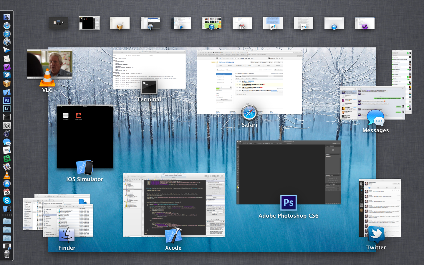 This week, I'll go back to having a "real" computer – an iMac with a Magic Mouse. I'm really curious to see how my habits change. Will I move back to having a bunch of scattered windows overlapping one another on my desktop, or will I keep playing windows on virtual desktops of their own, arranged at the top of that screenshot.