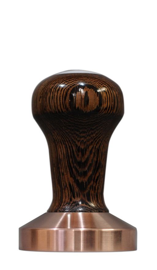 It's a wenge wood with a copper base. I think feeling the grain of wood will make it a little easier to feel connected to my tamper and make the act of creating espresso a more satisfying experience.
