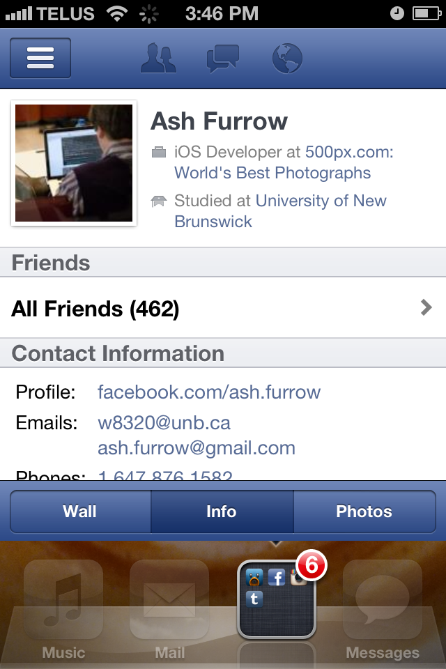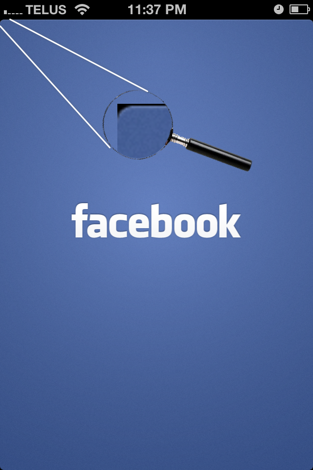 Finally, for the coup de grace, Facebook at one point decided that it wanted rounded top corners all throughout the app. It's very chic nowadays to pretend you're iPhone app has rounded corners, like an iPad app, and I've got nothing against that. However, Facebook decided in the end not to round their corners but forgot to update their default.png