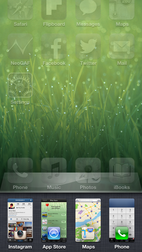 That's what the designer is suggesting, in relation to the device you're holding. That when you open the app switching tray, you see miniature icons on top of miniature apps that are hard to visually distinguish. With varying heights, too, or are they going to letterbox the app screenshots in the multitasking tray?