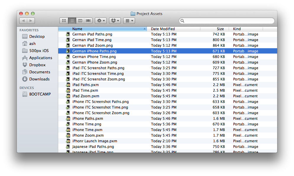 After getting the strings translated, I had to integrate the new text (which was not that hard). The hard part was actually redoing all the screenshots for the app store in five new languages (both iPad and iPhone) as well as making new launch images for the iPad, iPhone, and iPhone retina display. For a novice at image manipulation like myself, that took a lot longer than I expected.