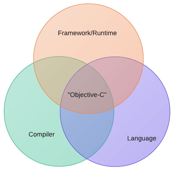 Historically, Apple has driven forward development on the Objective-C language, the Objective-C runtime, the Cocoa/Cocoa Touch frameworks, and the Compiler to build Objective-C programs. There is a high level of co-design in these different areas, which makes "Objective-C' such a nebulous term.