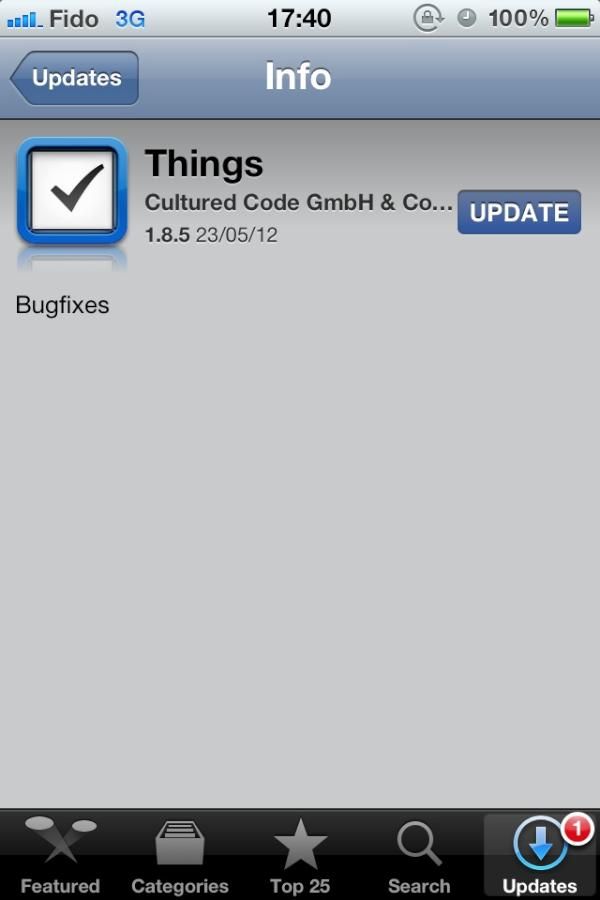 Most users will never look at this screen; they'll just hit "Update All", which is great. But when you're making apps on the scale of Things, you have lots of users, so some users inevitably will take a look at what's in the update. And when you think about it, the users who do happen to look at that page are probably very interested in what you write there. So you should make it count.